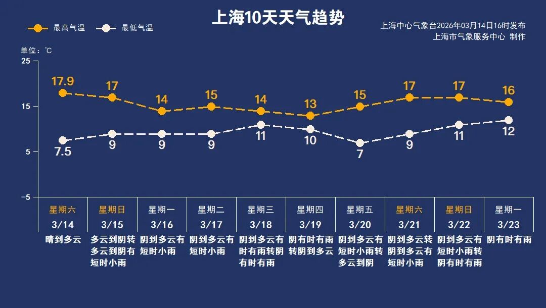晴朗灿烂的好天气今天再接再厉。早晨春寒料峭,上海各区最低气温多在2~8℃,最低的崇明只有2.4℃。白天升温迅速,午后全市最高气温升到了14~18℃,徐家汇站17.9℃。云量少阳光好,和周末很配!如果风再小点就更加完美了。此外今天下半夜到明天早晨局部地区有雾。